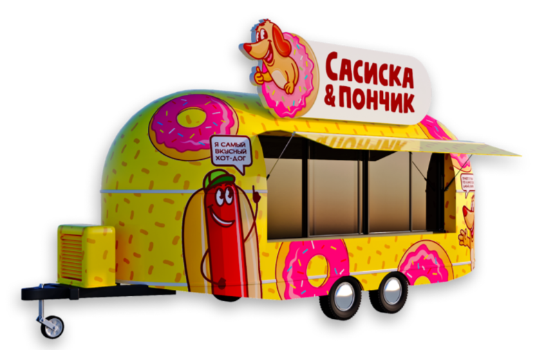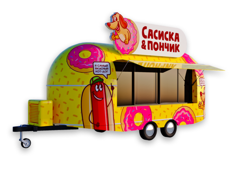 Вы ознакомитесь с договором франшизы, подпишите его, внесёте паушальный взнос и и фирменный фудтрак "Сасиска и пончик" запустится в производство